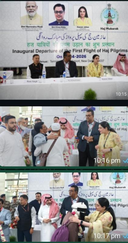نئی دہلی، 18 اپریل (میرا وطن نیوز )ہندوستان سے مقدس فریضہ حج کی ادائیگی کے لیے جانے والے حجاج کرام کی روانگی 18 اپریل سے شروع ہو گئی ہے۔ دہلی اسٹیٹ حج کمیٹی کے انتظامات کے تحت ملک کے دارالحکومت دہلی سے حج 2026 کے لیے جانے والے کل 371 حجاج کرام کو آج اندرا گاندھی بین الاقومی ایئر پورٹ کے ٹرمنل 3 سے سعودی ایئرلائن کی پرواز کے ذریعے حکومتِ ہند کی وزارتِ اقلیتی امور کے سیکریٹری ڈاکٹر شریوتس کرشنا اور دہلی حج کمیٹی کی چیئرپرسن کوثر جہاں نے پھولوں کے ہار پہنا کر مدینہ منورہ کے لیے اتوار کی صبح روانہ کیا۔اس موقع پر پہلی حج پرواز کے مبارک آغاز کے لیے ٹرمنل3 پر ایک شاندار تقریب کا انعقاد کیا گیا جس میں ہندوستان میں سعودی عرب کے نائب سربراہِ مشن احمد مشببب الاحمری، وزارتِ اقلیتی امور کے جوائنٹ سیکریٹری رام سنگھ اور دہلی اسٹیٹ حج کمیٹی کے ایگزیکٹو آفیسر اشفاق احمد عارفی بھی موجود تھے۔ اس موقع پر سیکریٹری وزارتِ اقلیتی امور نے اپنے خطاب میں کہا کہ حج پر جانے والے تمام معزز حجاج کرام ہندوستان کے سفیر اور نمائندے ہیں اور انہیں مکہ مکرمہ اور مدینہ منورہ میں اپنے قیام کے دوران ہندوستانی ثقافت کے بہترین نمائندے کے طور پر اپنی شناخت قائم رکھنی چاہیے۔ اس سے قبل دہلی حج کمیٹی کی چیئرپرسن کوثر جہاں نے مہمانوں اور تمام حجاج کرام کا استقبال کرتے ہوئے کہا کہ دہلی حکومت اور حج کمیٹی حجاج کرام کو تمام سہولیات فراہم کرنے کے لیے پرعزم ہے۔