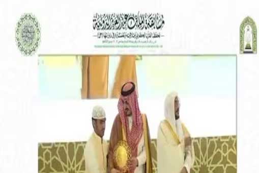 بھٹکل: سعودی حکومت کی جانب سے مکہ مکرمہ میں منعقدہ تینتالیسویں عالمی مسابقہ حفظِ قرآن کریم میں کرناٹک کے بھٹکل سے تعلق رکھنے والے ابراہیم بن فہیم شاہ بندری نے دوسرا مقام حاصل کیا ہے جس پر انہیں 60 ہزار سعودی ریال (تیرہ لاکھ تیس ہزار روپئے) بطورِ انعام دیئے گئے ہیں۔