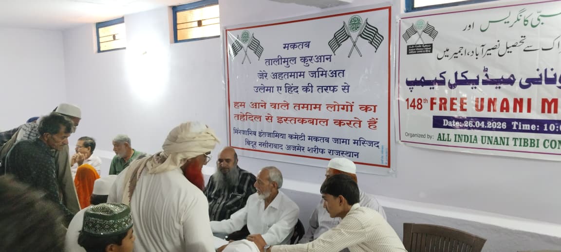 راجستھان کے دور دراز علاقوں میں بیمار وں کو طبی سہولیات فراہم کرنے کے لیے جمعیت علماءہند کے صدر مولانا محمود اسعد مدنی کی ہدایت پر ایک میڈیکل کیمپ کا انعقاد عمل میں آیا۔ یہ کیمپ گاو ¿ں بٹھور، تحصیل نصیرآباد، ضلع اجمیر (راجستھان) میں جمعیت علماءہند اور آل انڈیا یونانی طبی کانگریس کے مشتر کہ تعاون سے منعقد کیا گیا ۔ کیمپ میں علاقے اور اطراف سے بڑی تعداد میں عوام نے بلا تفریق مذ ہب و ملت شرکت کی اور تقریباً دو سو مریضوں نے مستفید ہوکر اپنا معائنہ اور علاج کروایا۔
