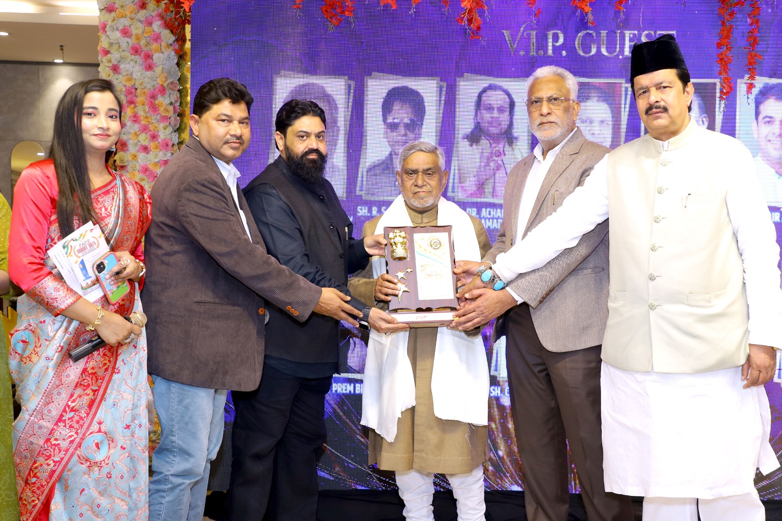 آل انڈیا ویاپر منڈل، سنجے ملک، بی ایس پی کے سابق لوک سبھا امیدوار محمد وقار چودھری، دہلی سٹیزن سروس کمیٹی کے صدر مولانا احسن قریشی، آل انڈیا امام فاو ¿نڈیشن کے صدر سید فرحت علی، ڈولفن فٹ ویئر کے ڈائریکٹر، سابق اے سی پی شیخ سیف الدین، سید شاکر حسن اور نیامپال سنگھ بطور مہمان خصوصی موجود تھے۔ نظامت کے فرائض دانش ایوبی اور عظمیٰ انصاری نے انجام دیے۔اس دوران تفریحی د نیا سے، عالمی شہرت یافتہ شاعر ڈاکٹر اعزاز الدین شاہ ‘پاپولر میرتھی’، بالی ووڈ اداکا ر راج شرما، اور ہریا نو ی گلوکار سلطان وی وی آئی پی کو اس تقریب میں مہمان خصوصی کے طور پر اعزاز سے نوازا گیا۔